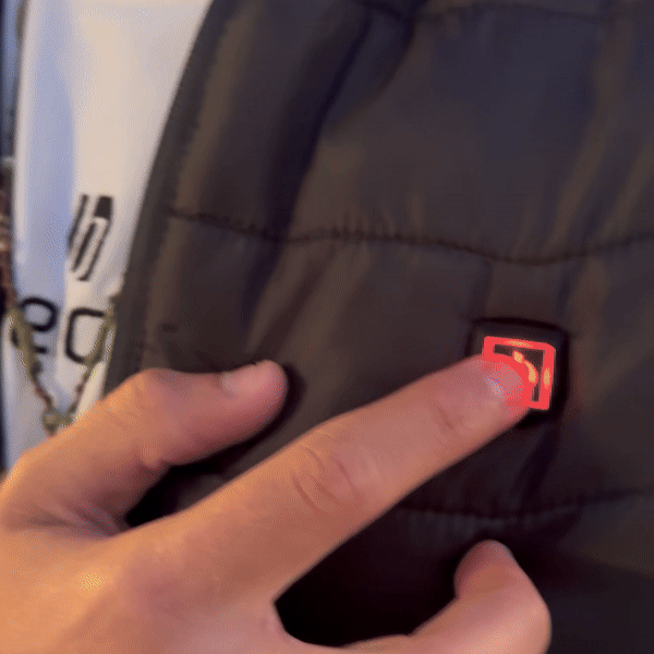 בלחיצה על כפתור החימום ניתן להפעיל את פונקציית החימום ובכך להפעיל חימום במעיל, עם 3 רמות חום שונות.