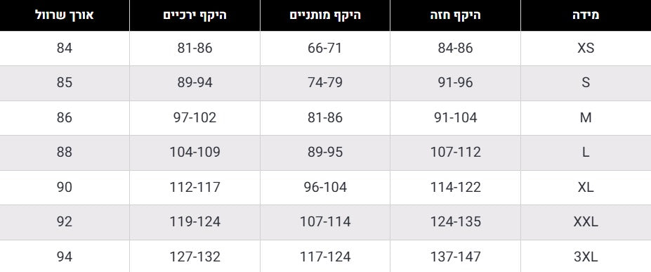 טבלת מידות